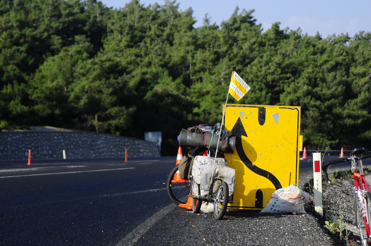 İnişi keyifle yaptıktan sonra bir lokantanın yanından geçiyorum. Aşçıbaşı olduğunu öğrendiğim kişi beni çağırıyor. Yolumu değiştirip içeriye giriyorum. Çay ikram ediyorlar ve sohbet başlıyor. Sohbetin ardından fotoğraf çekerken romörklü bir bisikletçi geçiyor. Hemen toplanıp onu yakalamaya uğraşıyorum. İleride bir yerde bisiklet duruyor ama sahibi yok. Sonra sahibi geliyor. İzmirli bisiklet romörkü yapımcılarından internet arkadaşım Cerem Cem çıkıyor kendisi. Sohbet ede ede Çeşme' ye doğru gidiyoruz.